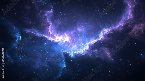 Fototapeta premium A vibrant nebula with swirling clouds of gas and dust, illuminated by distant stars, creating a breathtaking cosmic landscape.
