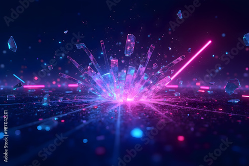 Naklejka premium A vibrant neon crystal explosion showcasing futuristic energy and dynamic particle effects