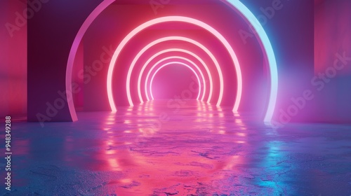 Naklejka premium A vibrant Neon Tunnel with striking reflections that captivate the eye with...