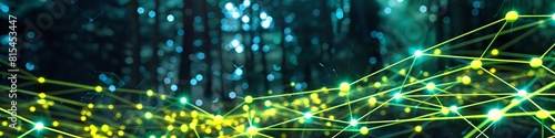 © Ramzan, Obraz premium A vibrant network of interconnected nodes in neon green and bright yellow