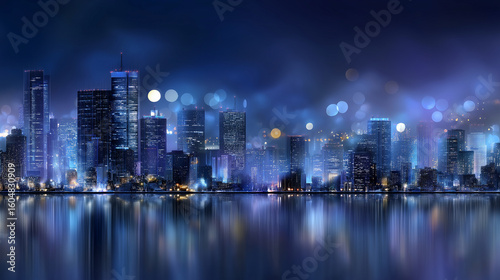 Fototapeta premium A vibrant nighttime city skyline with glowing lights