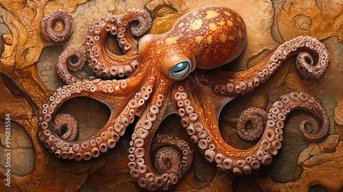 Obraz premium A vibrant octopus showcasing its intricate patterns and textures against a...