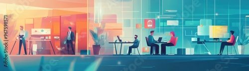 © ธิดาพร สูญราช, Obraz premium A vibrant office environment showcasing diverse professionals engaged in collaborative work and technology.
