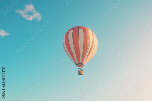 Fototapeta premium A vibrant orange and white hot air balloon gracefully floats against a serene...