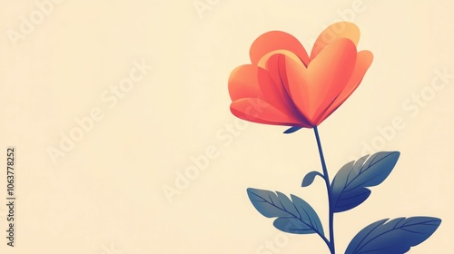Naklejka premium A vibrant orange flower with heart-shaped petals against a soft beige...