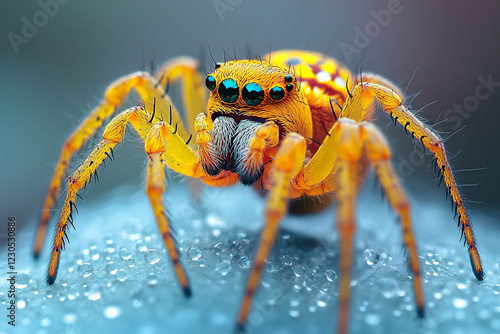 © Socitysh, Fototapeta premium A Vibrant Orange Jumping Spider With Striking Eyes