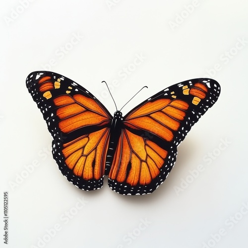 © Espresso, Fototapeta premium A vibrant orange Monarch butterfly resting on a light background, showcasing intricate wing patterns and colors.