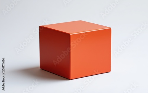 © Marina, Fototapeta premium A vibrant orange storage cube with a smooth, matte finish, isolated on a bright white surface