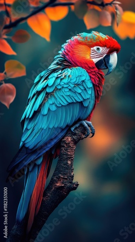 Obraz premium A vibrant parrot perched on a branch, showcasing its colorful feathers...