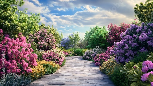 Fototapeta premium A vibrant pathway through a colorful garden filled with blooming flowers and...