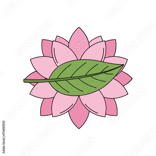 Fototapeta premium A vibrant pink lotus flower with a green leaf, symbolizing tranquility and...