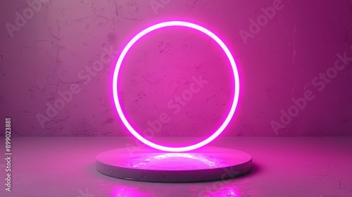 © MNFTs, Obraz premium A vibrant pink neon light circle glowing against a textured background, creating a modern and artistic ambiance.
