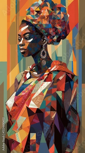 © Alex, Fototapeta premium A Vibrant Portrait of a Woman in a Colorful Geometric Patterned Dress