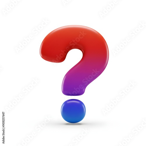© Kenio, Naklejka premium A vibrant question mark with a gradient from red to purple and a blue dot on a white background