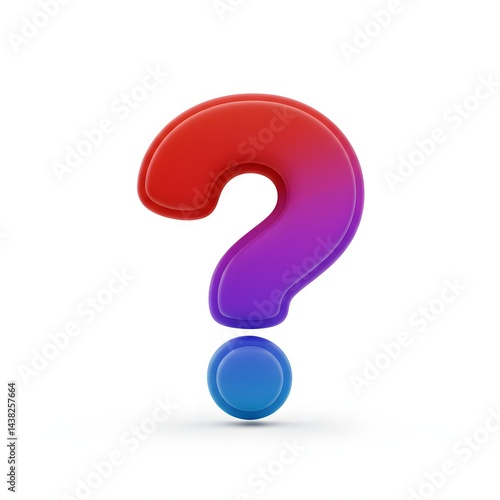 © Kenio, Naklejka premium A vibrant question mark with a gradient from red to purple and a blue dot on a white background