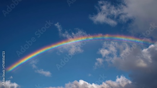 Obraz premium A vibrant rainbow arches across a clear blue sky, a picturesque scene