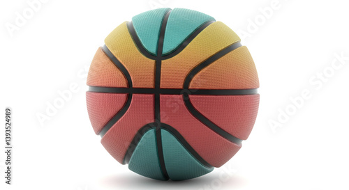 © shadab, Fototapeta premium A vibrant rainbow basketball ready for a game of joyful competition, showcasing a unique pastel gradient design against a clean white background.