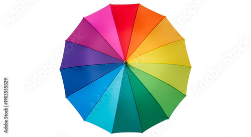 © MDMEHADI, Obraz premium A vibrant rainbow-colored pie chart divided into equal segments isolated on transparent background