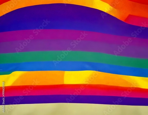 © Bualong, Obraz premium a vibrant rainbow flag with horizontal stripes in various colors, including purple, blue, green, yellow, orange, and pink