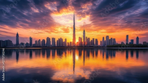Fototapeta premium A vibrant rainbow stretching across a bright blue sky after a summer rain,...