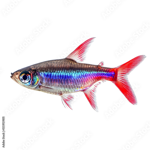 © Tohamina, Fototapeta premium A vibrant red and blue fish isolated on black background showcasing its iridescent scales and fins