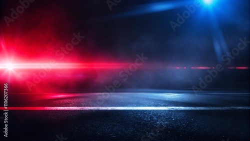 © mamo studios, Obraz premium A vibrant red and blue light beam illuminates a dark road, creating a striking contrast in the night scene.