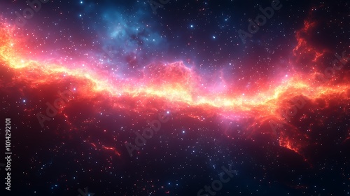 Fototapeta premium A vibrant red and blue nebula stretches across the cosmic landscape,...