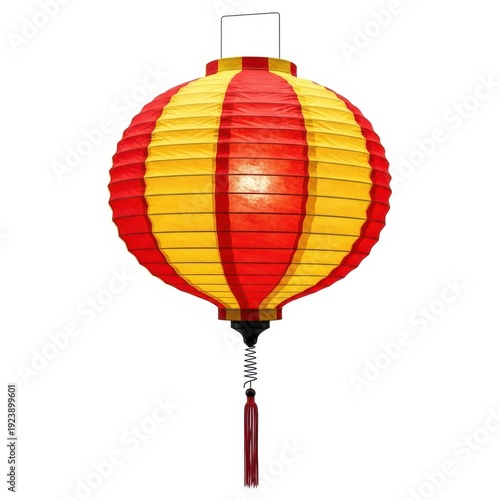 © Mahmudul, Obraz premium A vibrant red and yellow chinese lantern hanging against a white background