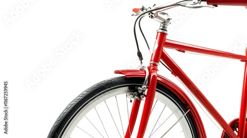 © irawan, Fototapeta premium A vibrant red bicycle front section is displayed