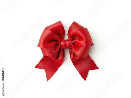 Fototapeta premium A vibrant red bow, neatly tied, isolated on a pure white background,...
