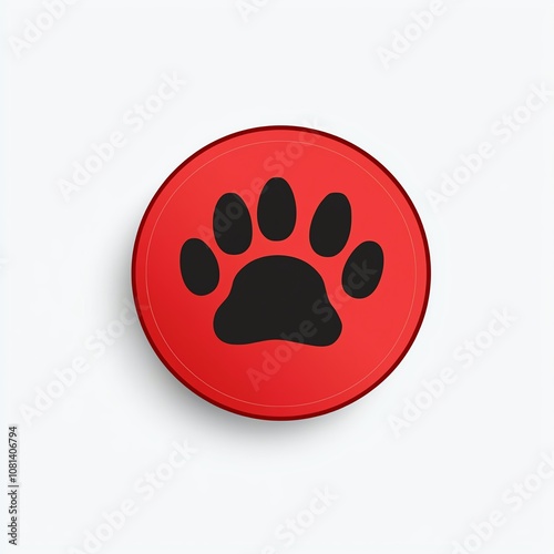 © padungsak, Obraz premium A vibrant red button with a black paw print design, symbolizing pet love and companionship.