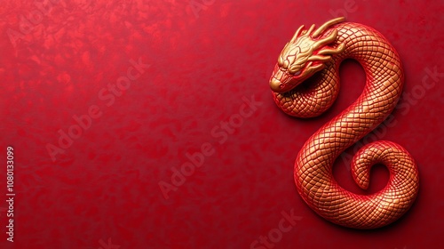 © Jenjira, Obraz premium A vibrant red dragon illustration symbolizing good fortune.