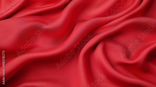 Obraz premium A vibrant red fabric drapes elegantly, showcasing its rich texture and smooth...