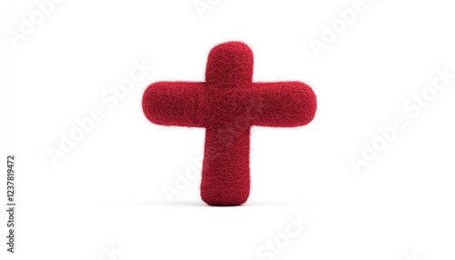 Fototapeta premium A vibrant red felt cross sculpture standing alone on a white background,...