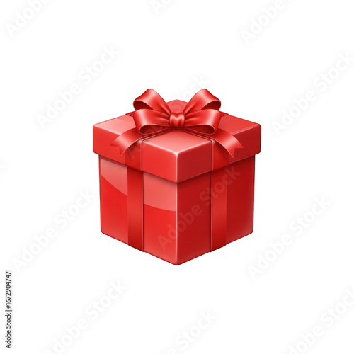 © Muhammad, Obraz premium A vibrant red gift box adorned with a matching bow, set against a stark black background for emphasis