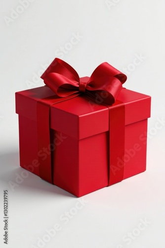 Fototapeta premium A vibrant red gift box, elegantly adorned with a luxurious satin ribbon, symbolizes celebration and thoughtful gifting.