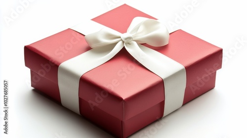 Fototapeta premium A vibrant red gift box with a white ribbon waiting to be opened on a festive occasion