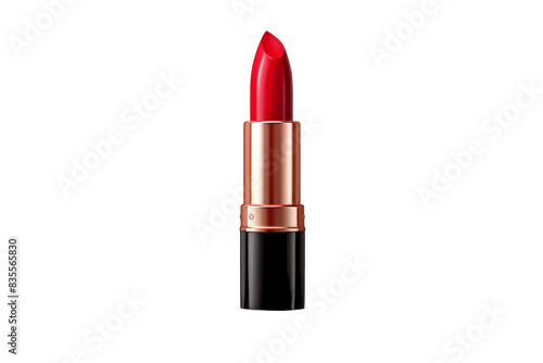 © katrin888, Obraz premium A vibrant red lipstick in a sleek black and gold case, isolated on a transparent background, perfect for beauty and fashion themes.