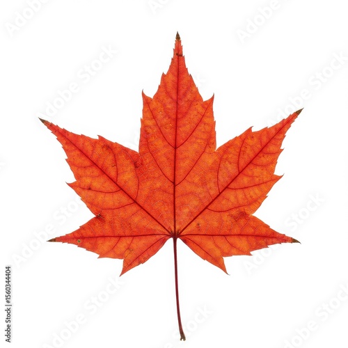 © Liton Khan, Obraz premium A vibrant red maple leaf isolated on white background
