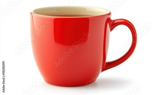 Obraz premium A vibrant red mug filled with tea, perfectly isolated against a clean white...