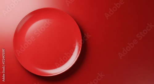 © Pangeran, Obraz premium A vibrant red plate sits atop a flat, smooth, deep red surface.