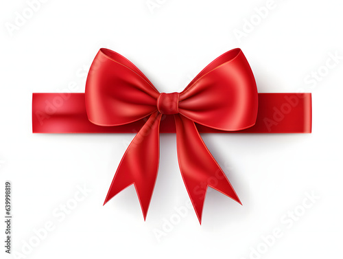 Fototapeta premium A vibrant red ribbon bow elegantly crafted, set against a pure white...