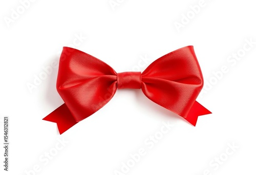 © Siravit, Fototapeta premium A vibrant red ribbon bow, perfectly tied, isolated on a pure white background, satin, gift
