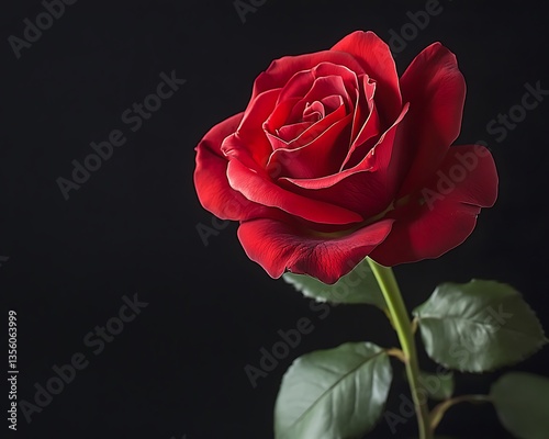 Fototapeta premium A vibrant red rose blooms against a dark black background