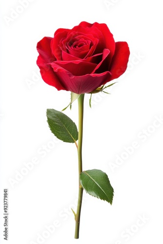 Naklejka premium A vibrant red rose with lush petals and green leaves, perfect for symbolizing...