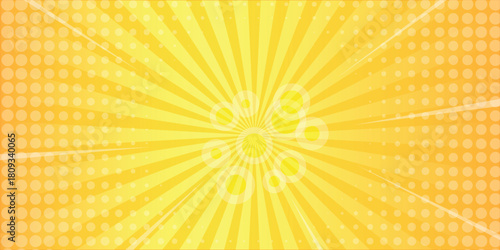 © Wahid photos, Obraz premium A Vibrant, Retro Yellow Sunburst Background with Halftone Dots