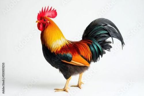 © Vooglo.com, Fototapeta premium A vibrant rooster with a bright red comb glossy black tail feathers