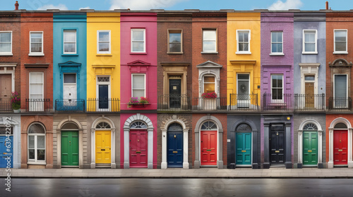 © labirint, Fototapeta premium A vibrant row of multi-colored doors