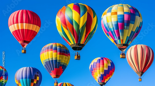 © Moon, Fototapeta premium A vibrant scene of multiple hot air balloons ascending in the air