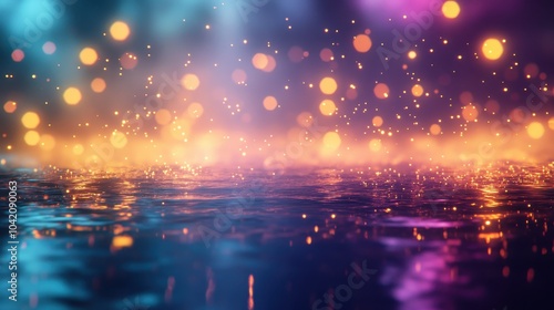 © Yotwarit, Naklejka premium A vibrant scene of shimmering water with glowing bokeh lights, creating a magical and serene atmosphere.